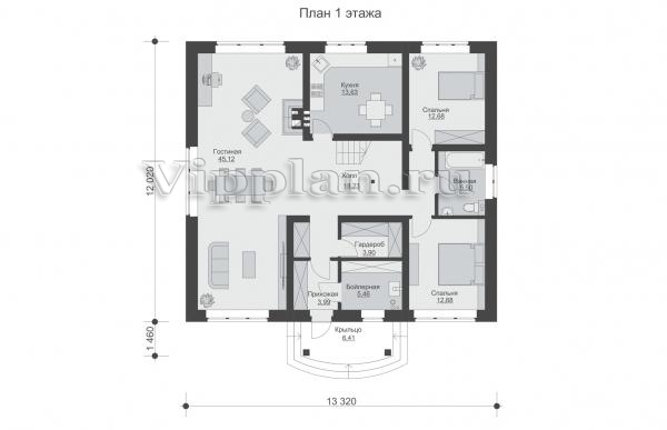 | Размеры дома: | 13.48м×13.32м |